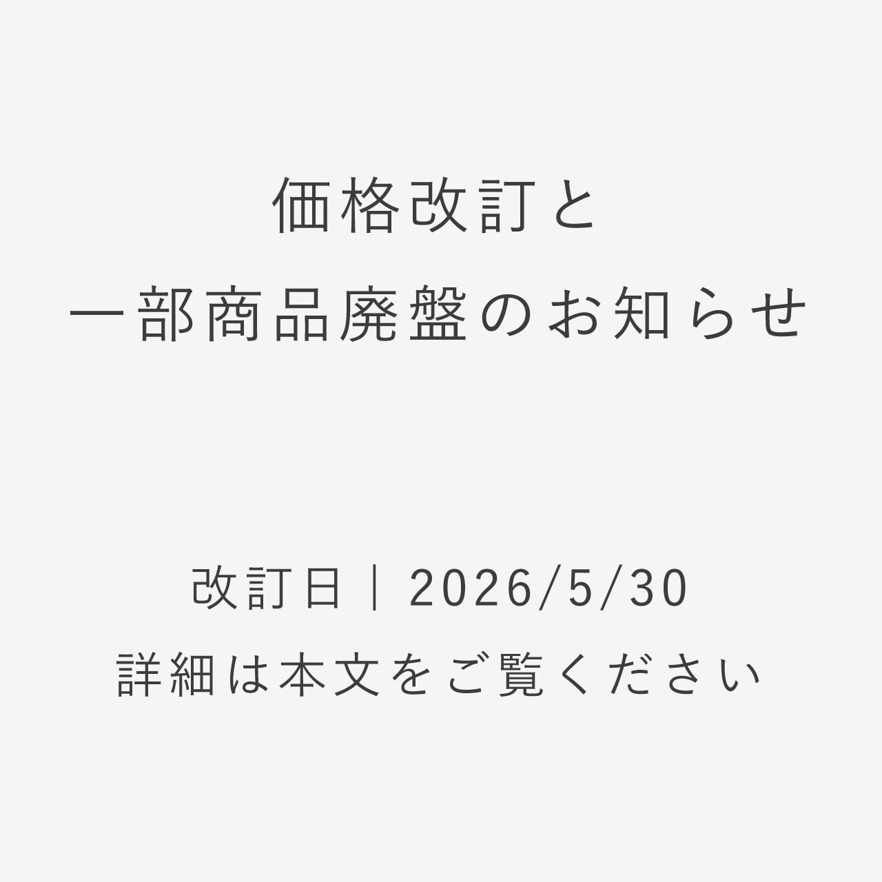 【重要なお知らせ】2026年5月30日 価格改訂/一部商品の廃盤について
